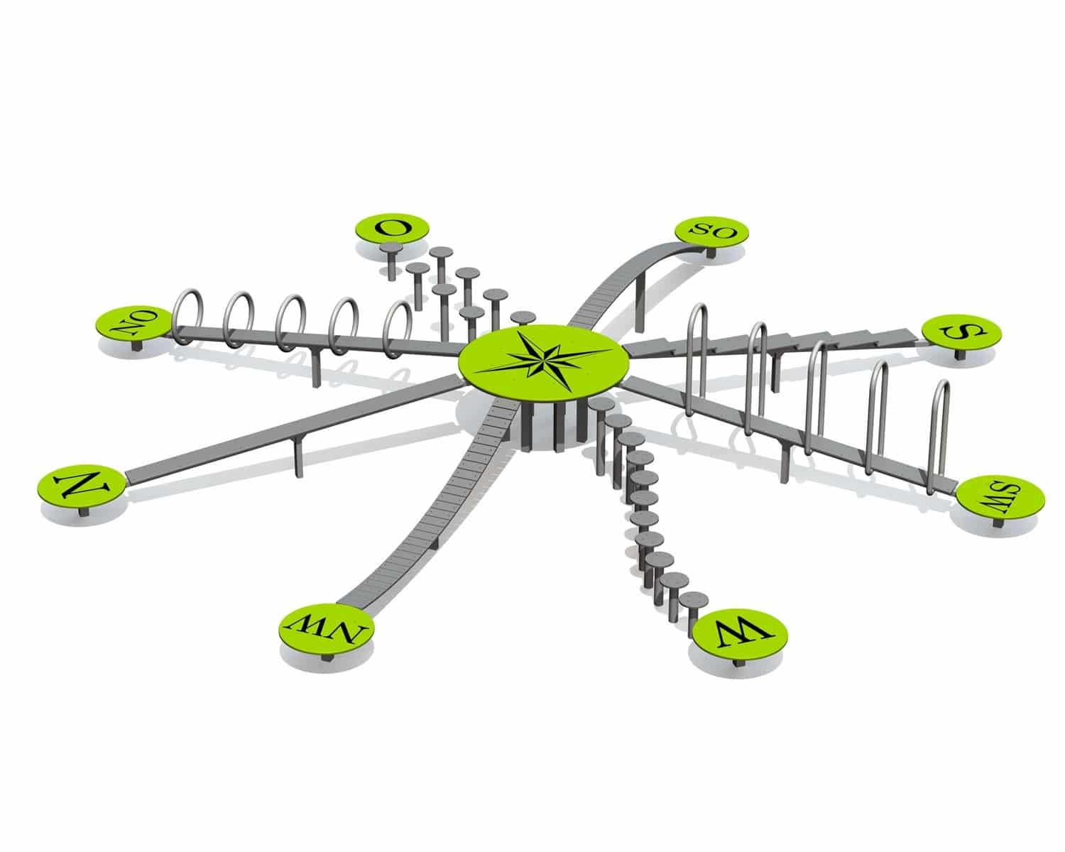 Balancebane med 8 forskellige udfordringer og kompas