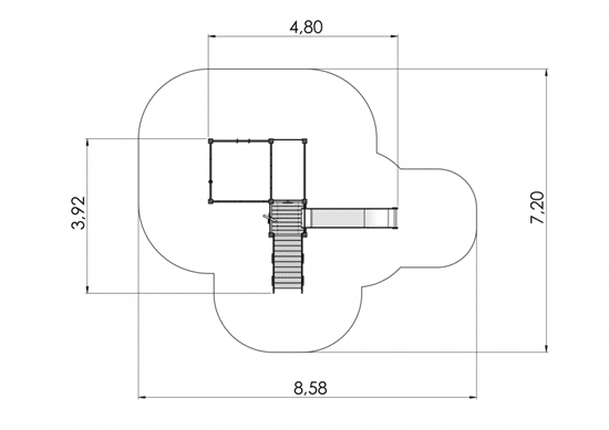 Faldunderlag: 8,58 x 7,20 Meter