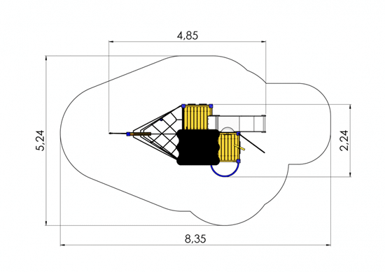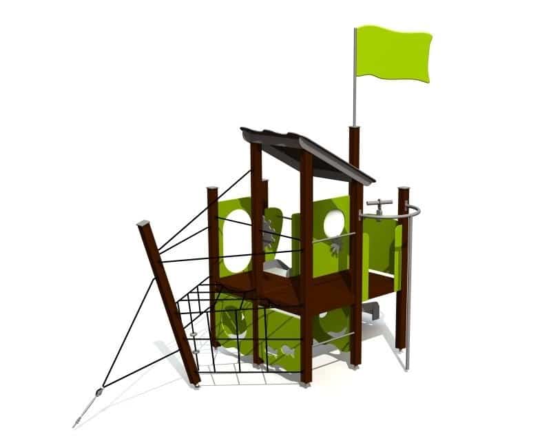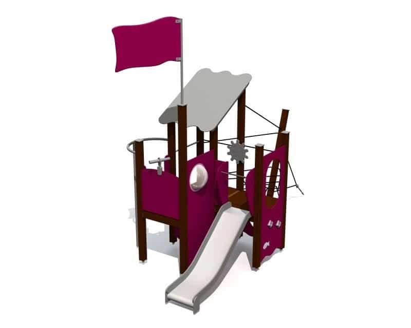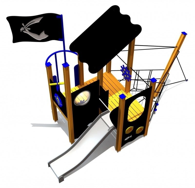 Skib med rutsjebane, brandmands stang, klatrevæg, skibs rat, kravlenet, kikkert, tag – 95 cm til gulve