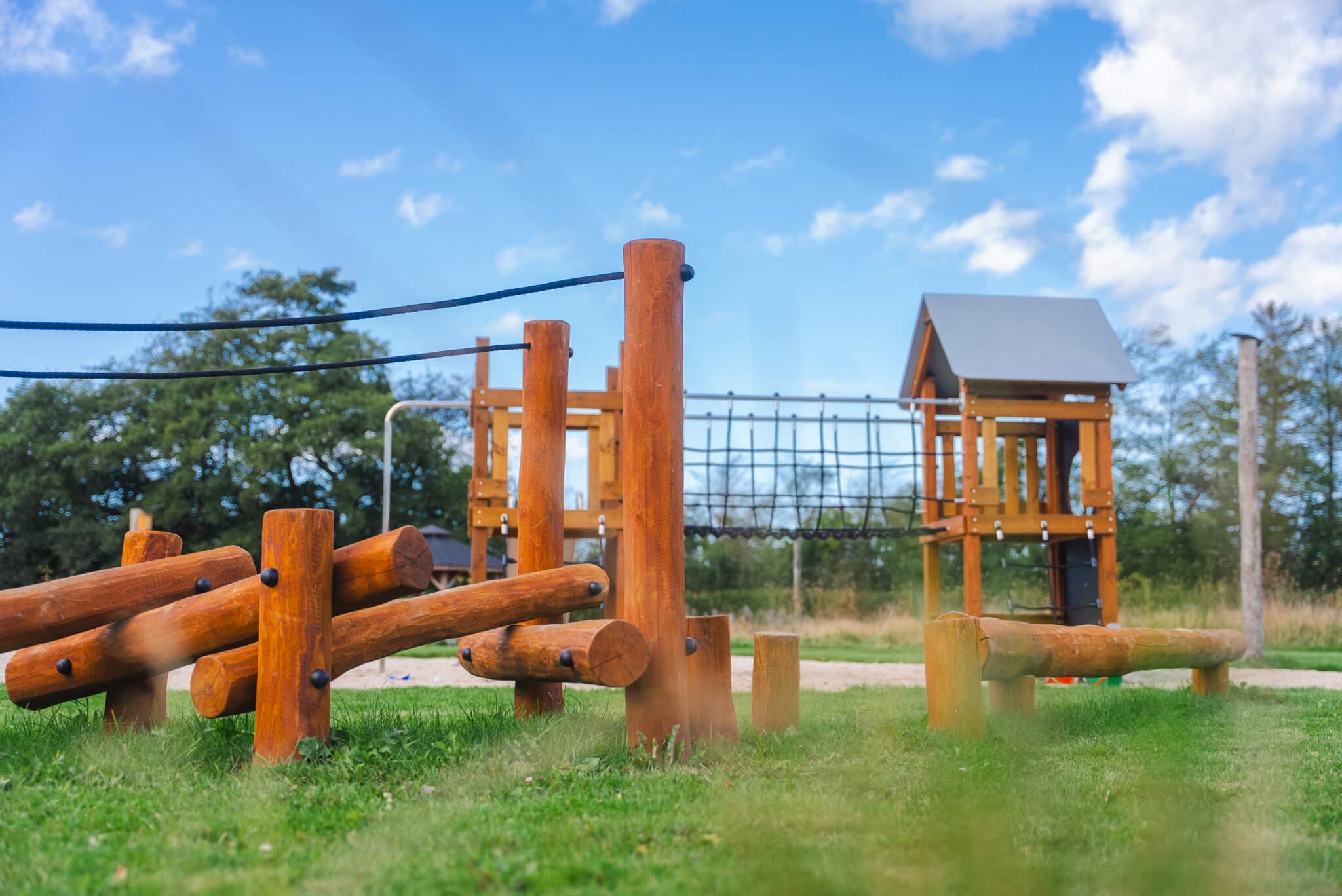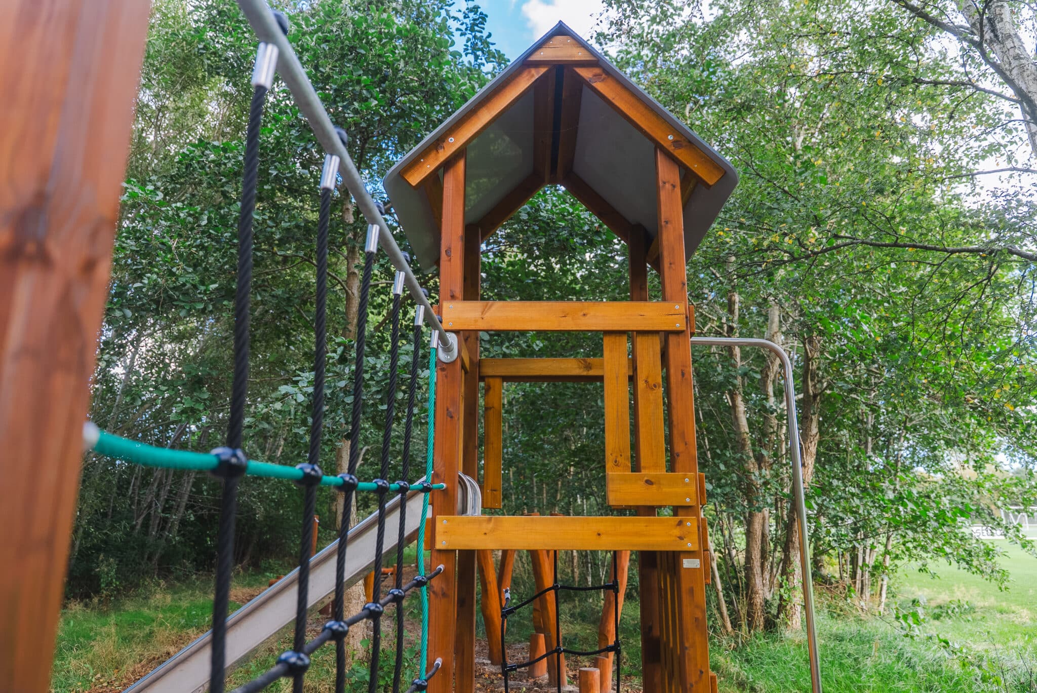 • På trods af den lave pris er der aldrig gået på kompromis med kvalitet eller sikkerhed. Der anvendes kun materialer og tekniske løsninger, som er gennemtestet på legepladsmarkedet gennem mange år. Således anvendes der limtræsstolper på galvaniserede stolpe-fødder eller robinie og plasthætter på toppen af stolperne som konstruktiv træbeskyttelse. Tage, side afskærmninger, fjeder vipper og rutsjebanesider er udført i robinie eller HDPE plader, glideflader af rustfrit stål. Alle ståldele er galvaniserede og pulverlakerede. Skruer, bolte og møtrikker er afdækket med plasthætter.​